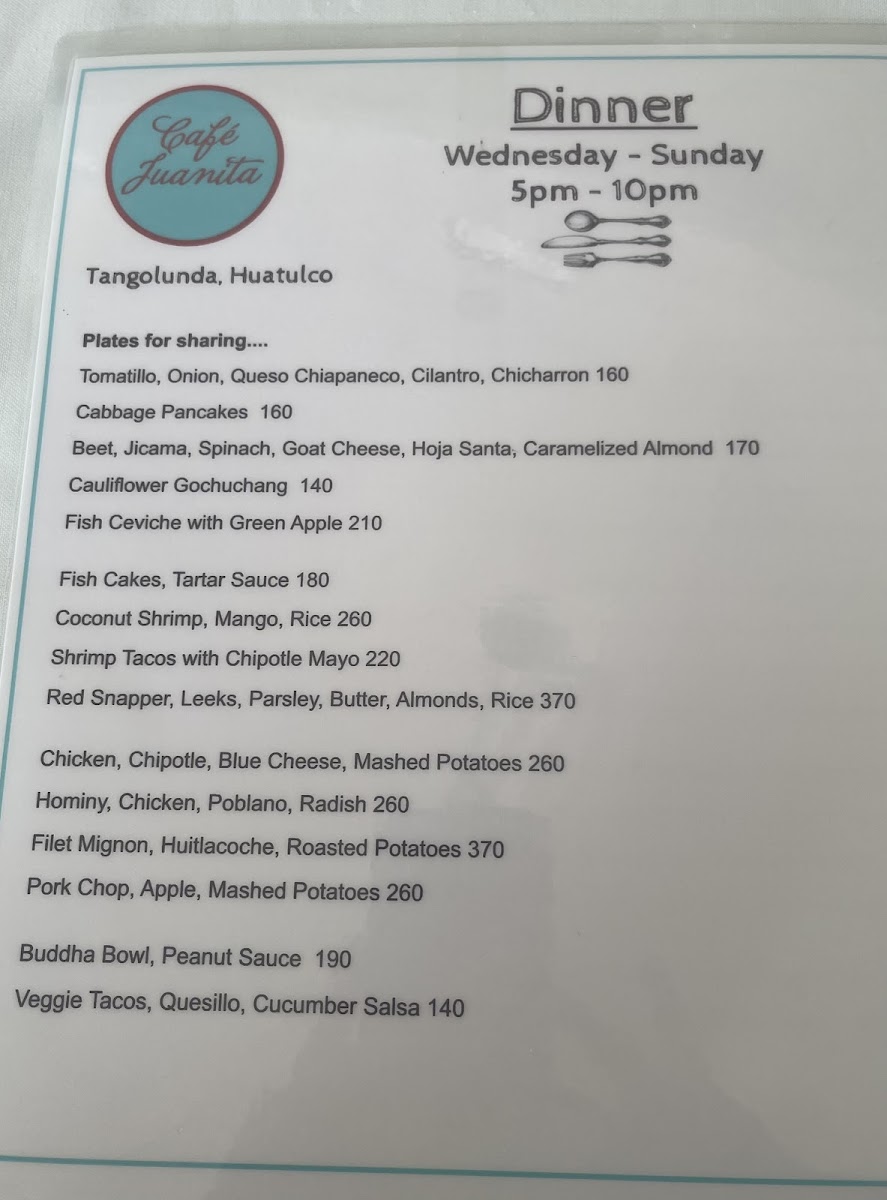 Welcome to Café Juanita, a hidden gem nestled in Tangolunda, Oaxaca. This charming café combines fresh, local ingredients with a serene atmosphere, making it an ideal spot for breakfast, brunch, or dinner. Guests rave about the exceptional flavors—highlighted by the standout maquina verde juice and the mouthwatering fish tacos, particularly popular among resort-goers tired of typical fare.